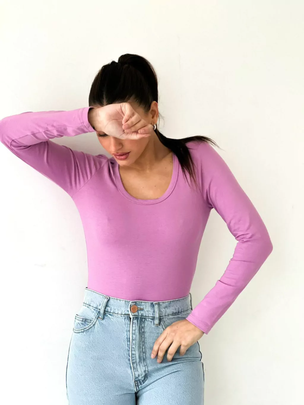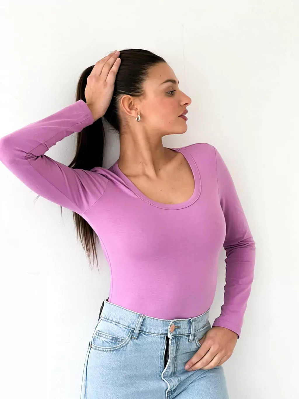 Body De Algodon Con Elastano, Tipo Camiseta Con Manga Larga Y Escote Redondo