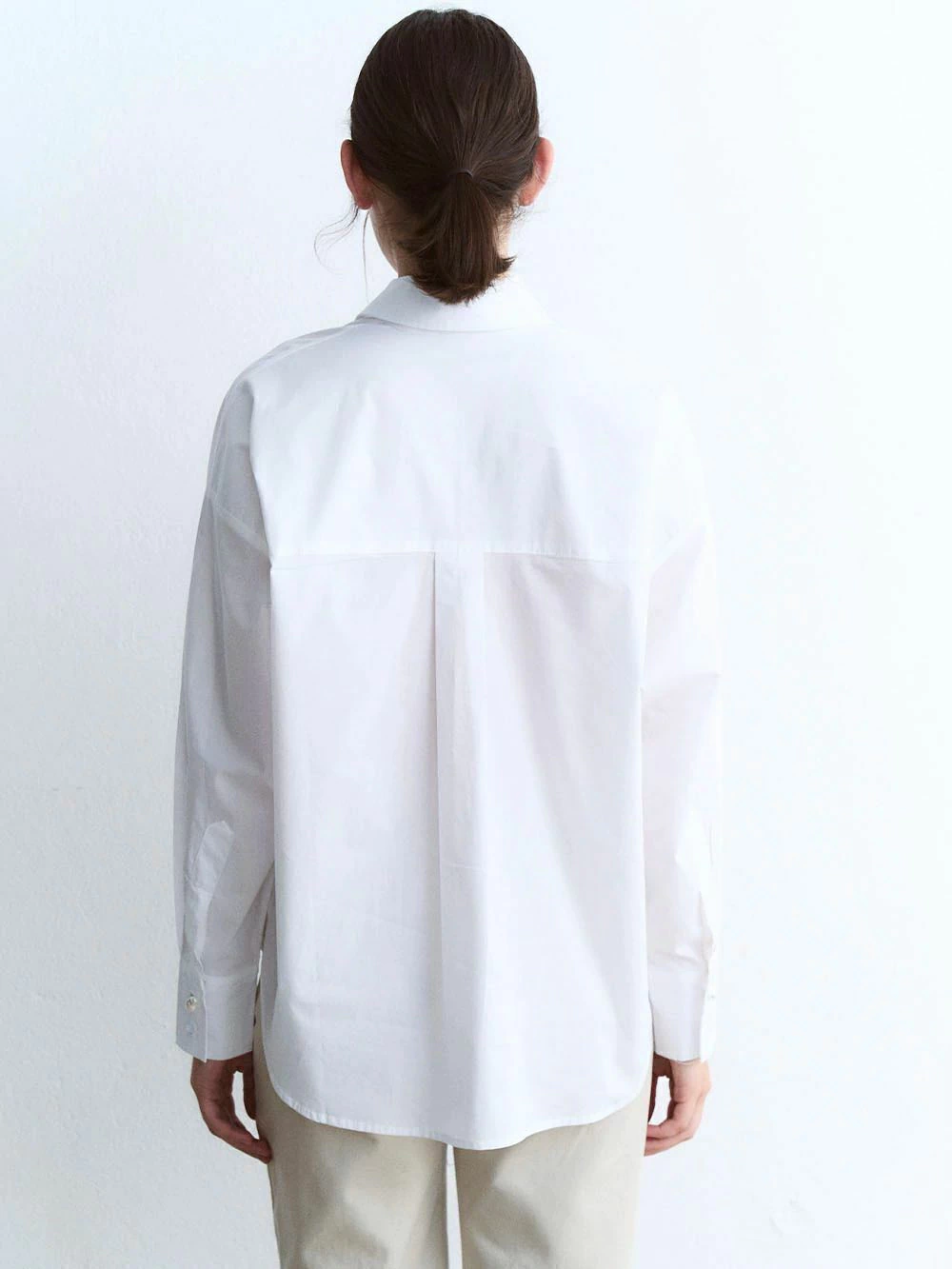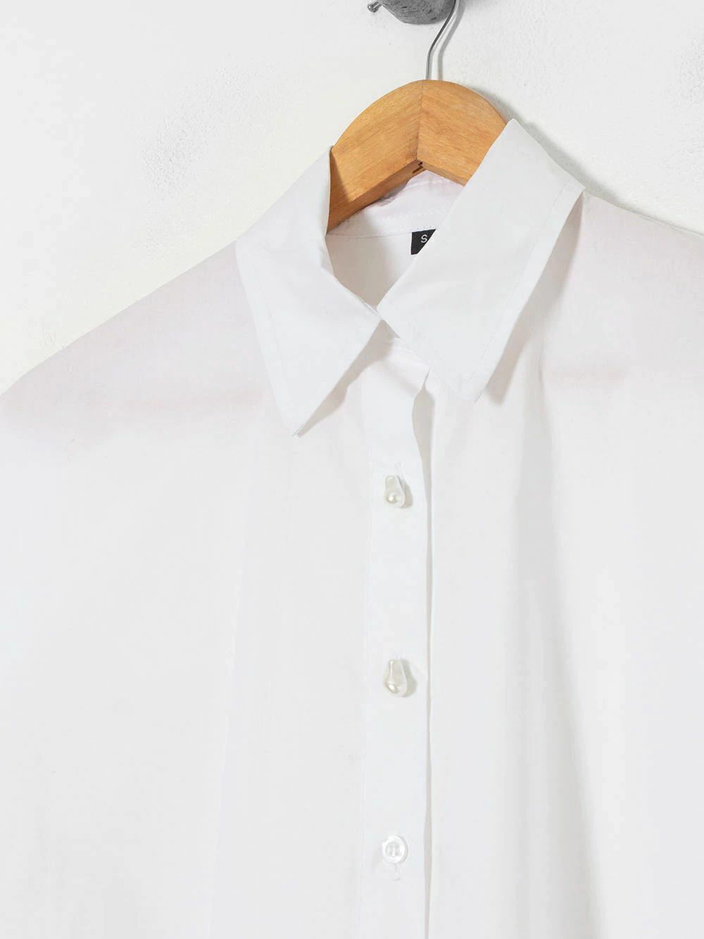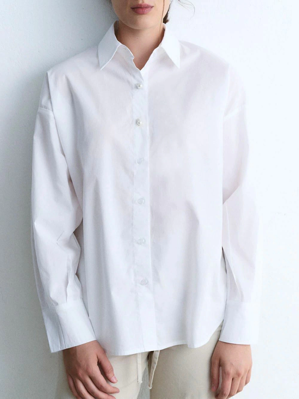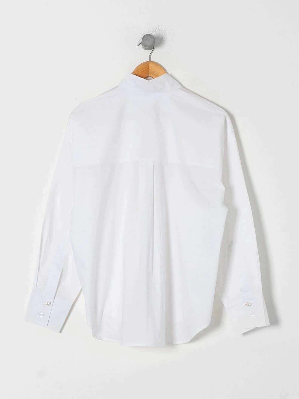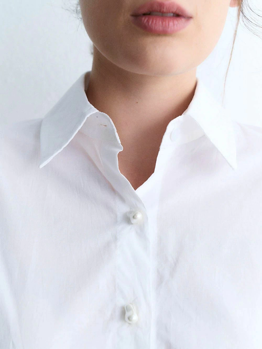 Camisa oversized con dos botones distintos perlados y uno en cada puño.