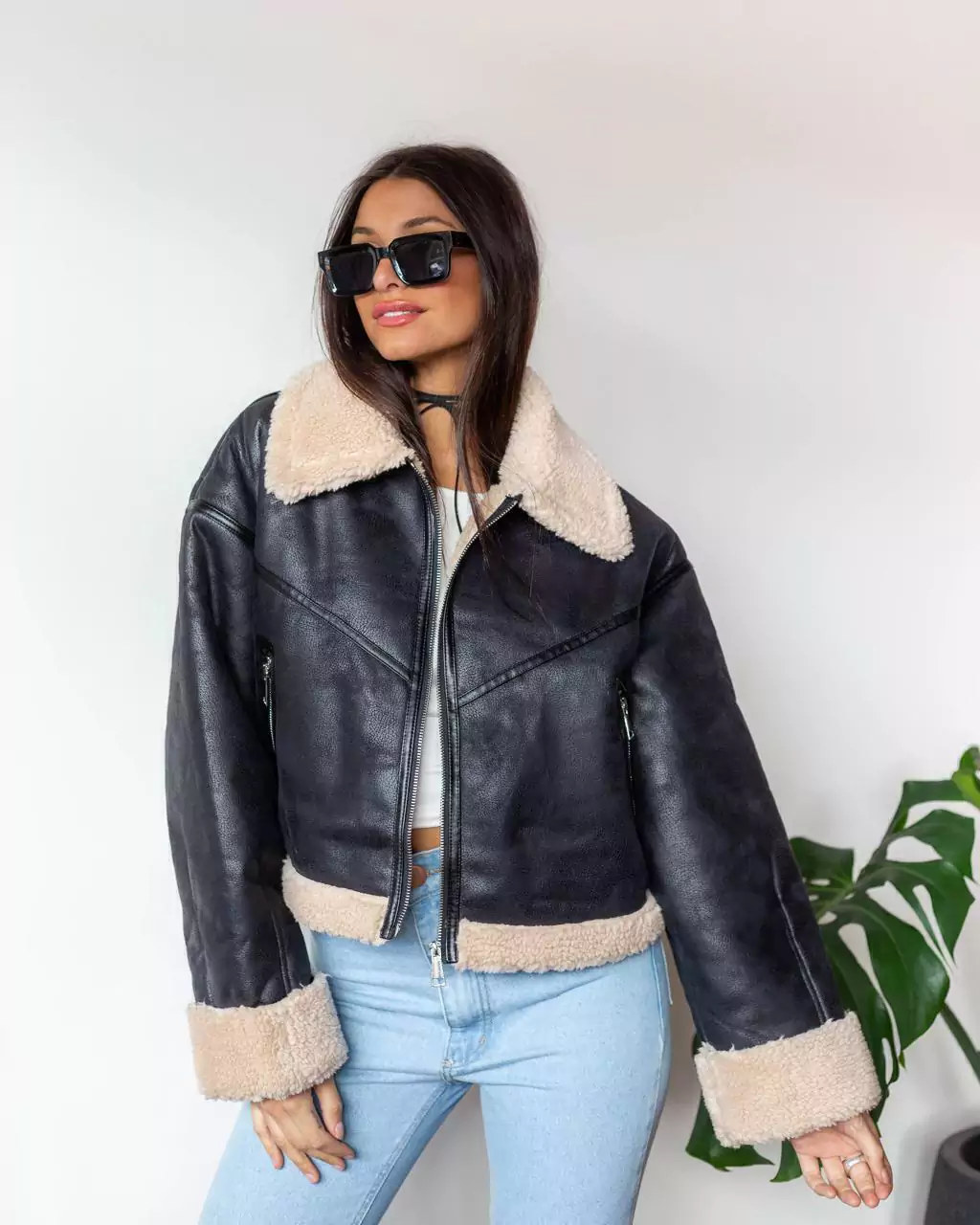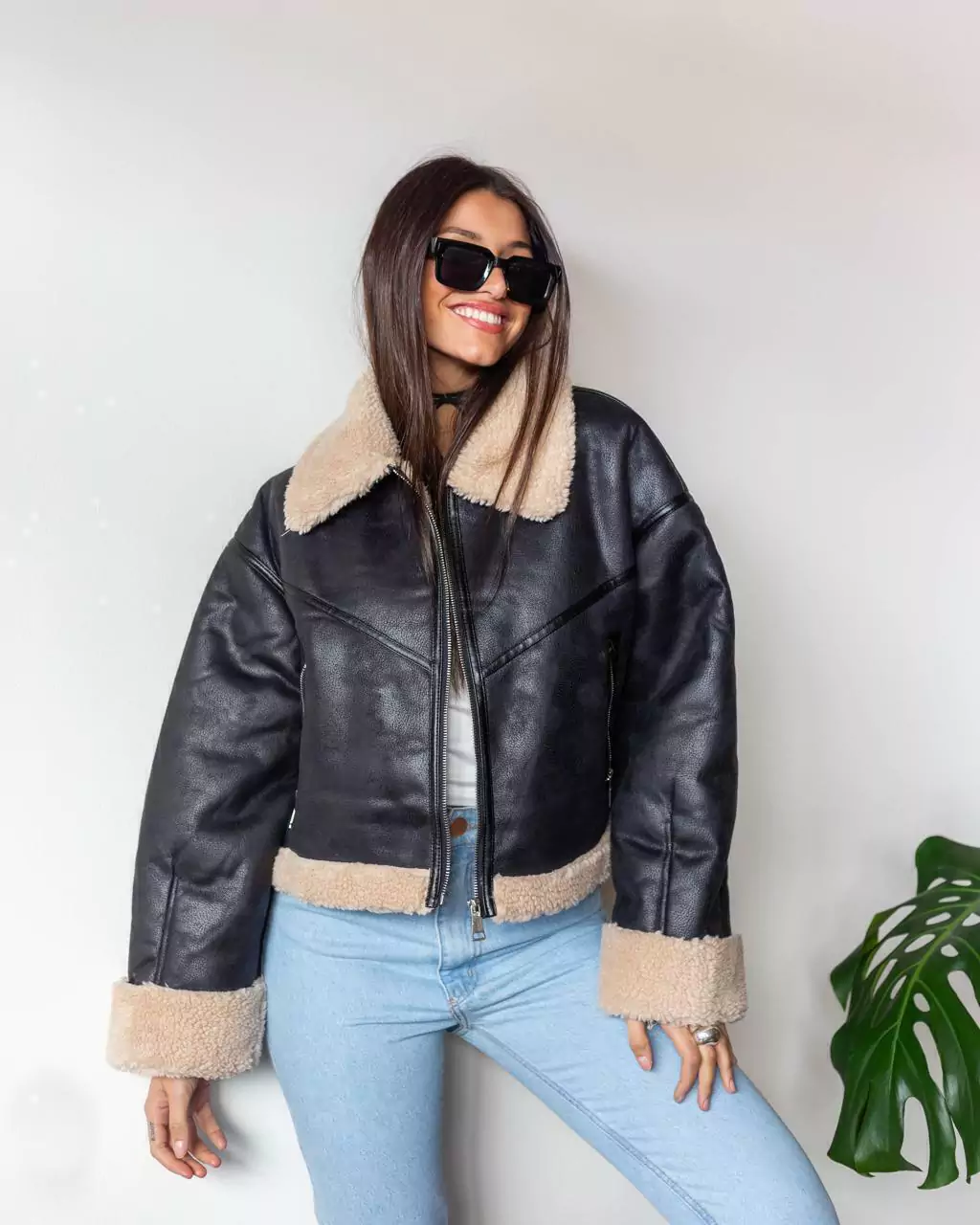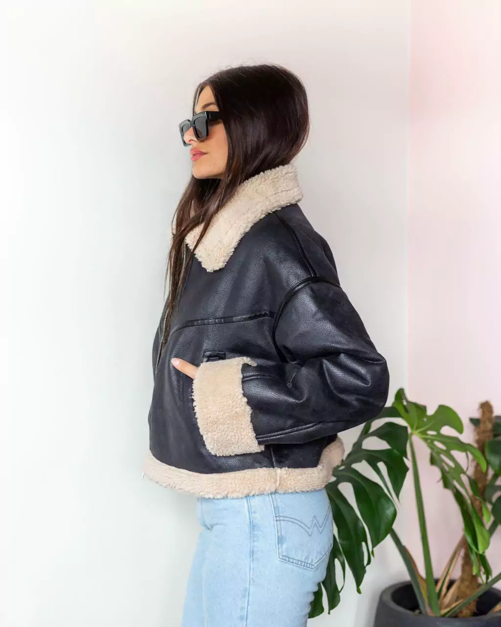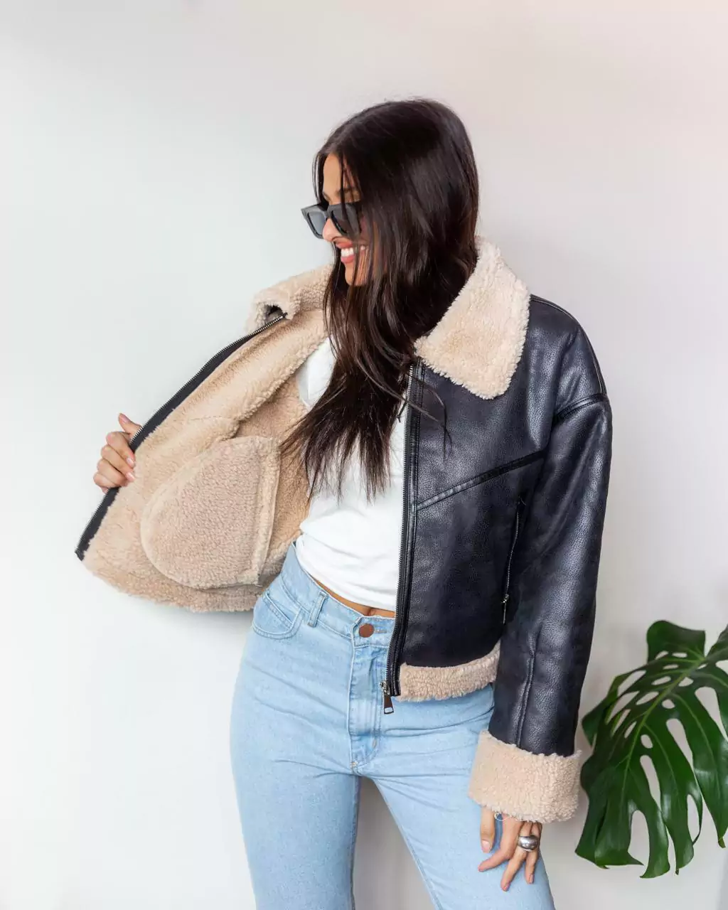 Gamulán crop efecto ecocuero vintage e interior forrado completamente con pelo sintético