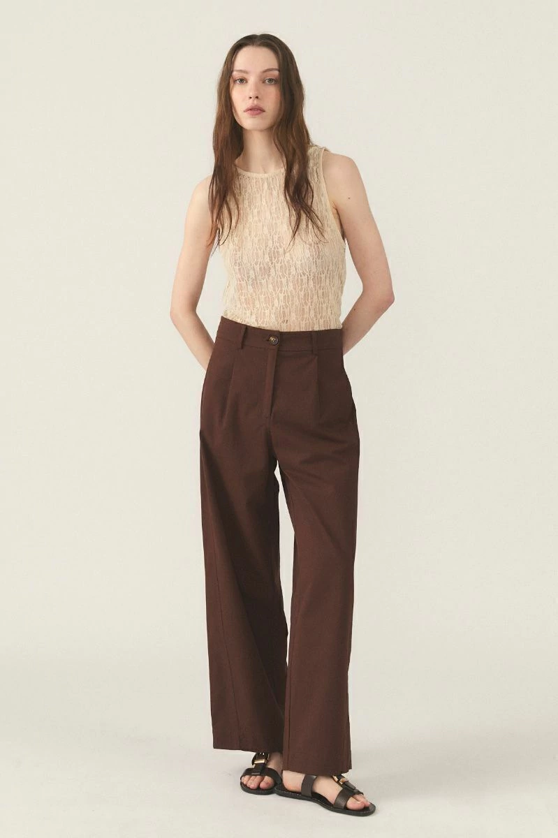 Pantalon De Gabardina Sastrera 100% Algodón. Calce Holgado Estilo Baggy. Tiro Alto Con Recortes Pespunteados A Tono De Tela. Bolsillos Laterales Sobre Costuras.